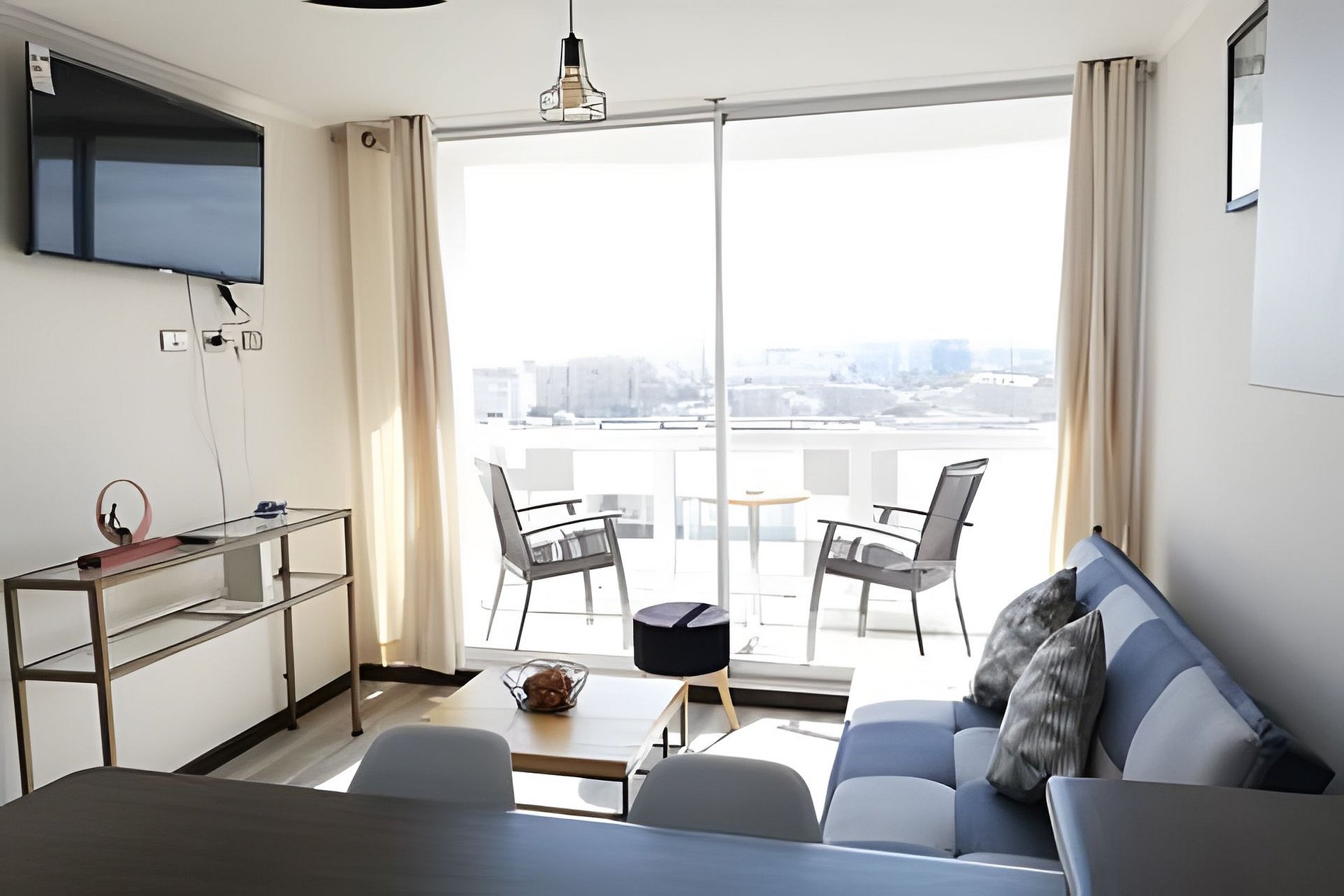 Lindo departamento amoblado para 5 personas. Habitación principal en suite, con tv, baño privado y walking closet. Equipada con cama 2 plazas. Segunda habitación equipada con litera y 1 cama individual. Segundo baño equipado completamente. Living con Televisor de pantalla plana con tv cable y Wifi.