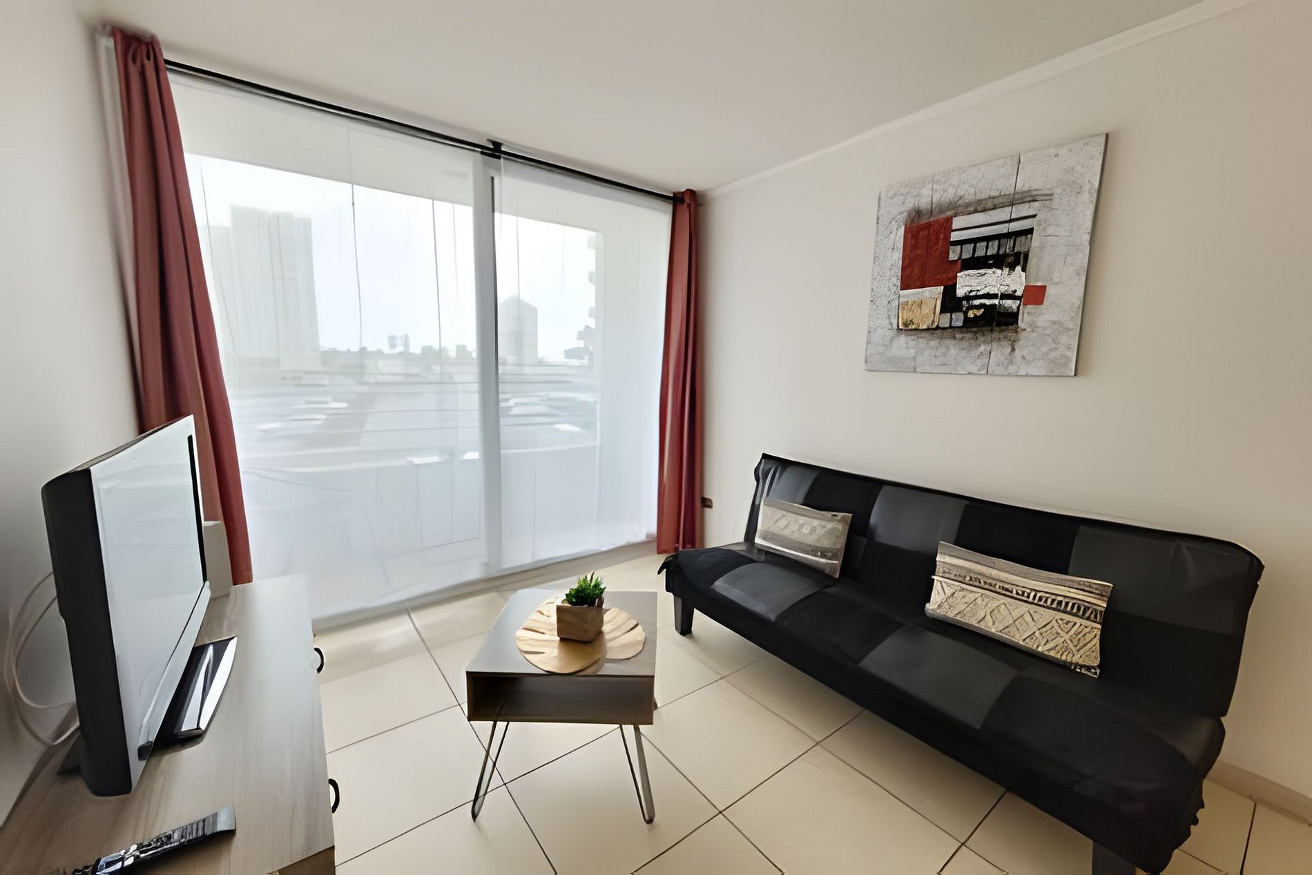 Lindo departamento de dos dormitorios y un baño completamente equipado para 4 personas. Ubicado en segundo piso en Condominio Marina Oceano a una cuadra de la playa y Casino Enjoy de Peñuelas. Dormitorio principal con cama de 2 plazas, walking closet y tv de pantalla plana. Segunda habitación con 2 camas individuales de 1 plaza. Posee tv cable e internet