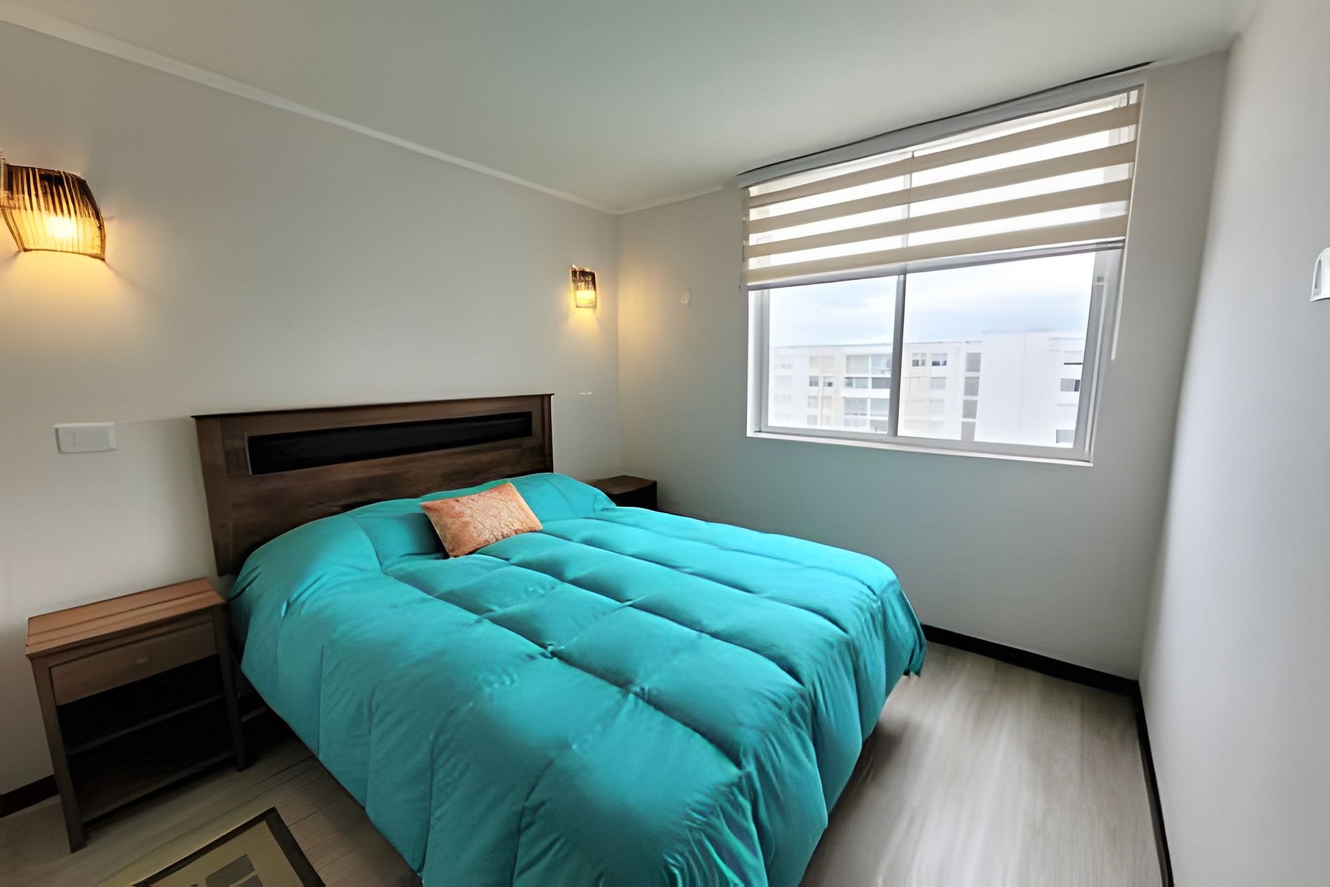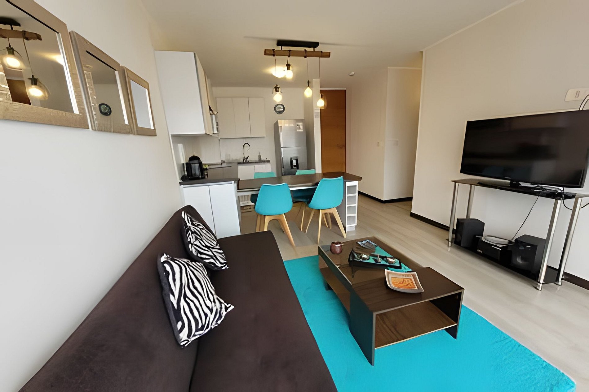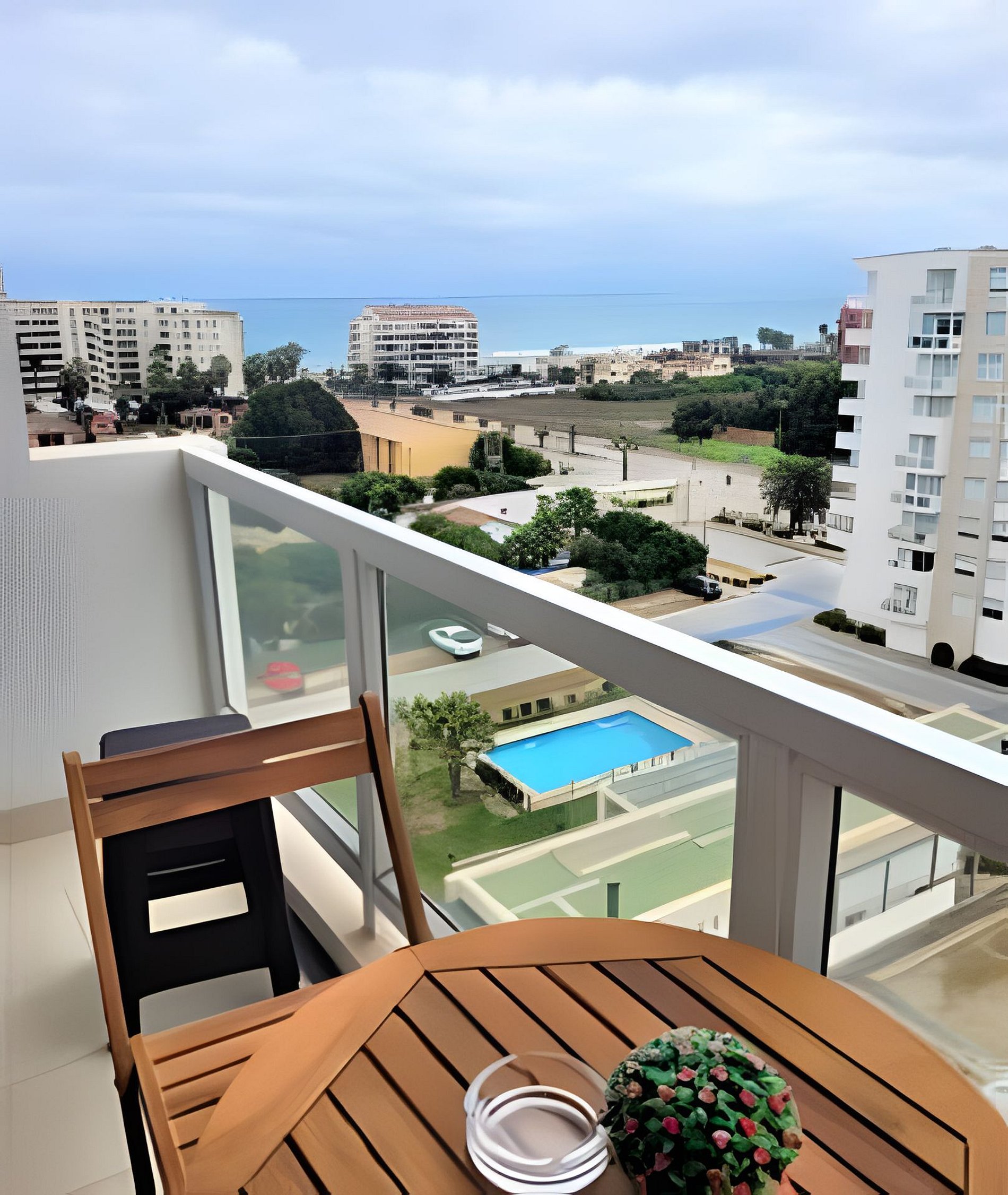 Lindo departamento amoblado en décimo piso en Condominio Pacífico 2800, equipado para 5 personas, a una cuadra de la playa en sector de cuarto esquinas. Desde su balcón podrás ver el mar, la piscina y ciudad.