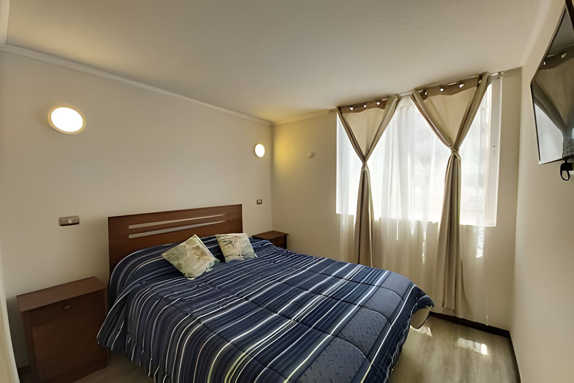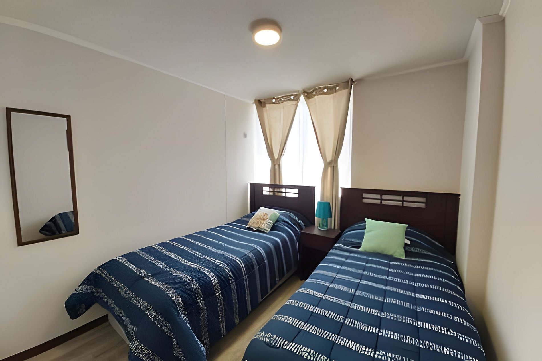 Cómodo departamento en cuarto piso de Condominio Pacífico III, ubicado en sector de playa cuatro esquinas. Full equipado para 5 personas, incluye TV cable y WiFi. El departamento cuenta con 3 dormitorios y 2 baños completos, más cocina tipo americana y sala de estar.