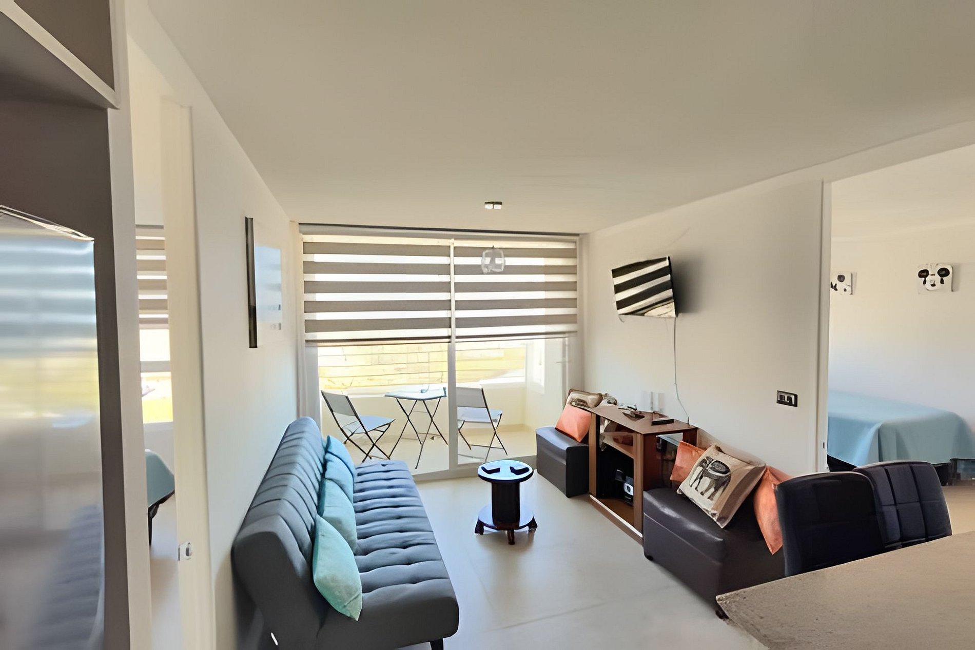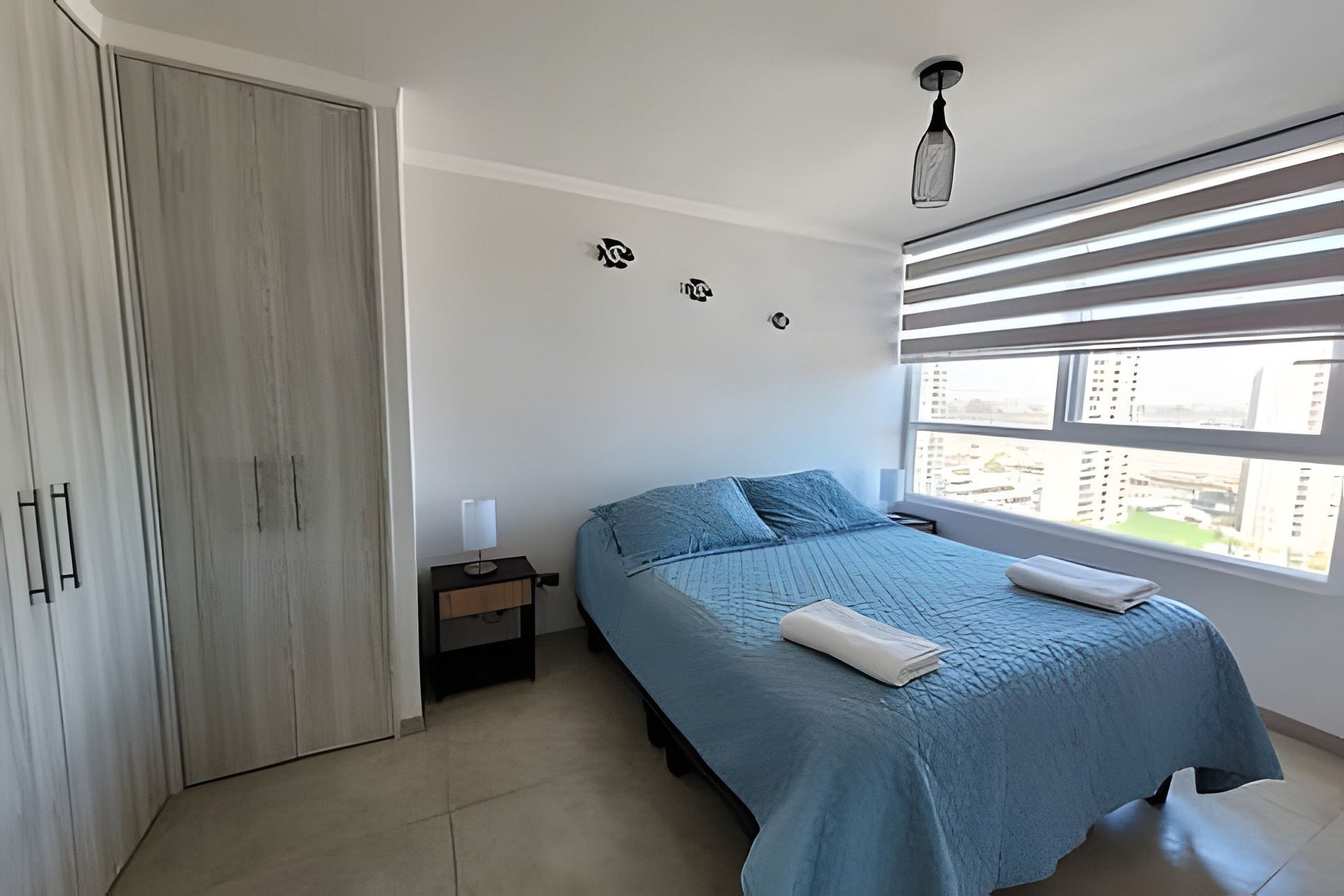 Hermoso departamento amoblado y equipado para 4 personas con muy linda vista. Posee malla protectora en todas sus ventanas y balcón. Tiene 2 habitaciones cada una con su baño privado, en el área de living podrás disfrutar de TV con equipo de música. Posee internet Wifi de fibra. El departamento es full electric con encimera de vitrocerámico y horno eléctrico. El sistema de agua caliente es mediante calderas del condominio. Desde el living puedes salir al balcón y disfrutar la vista a la playa.