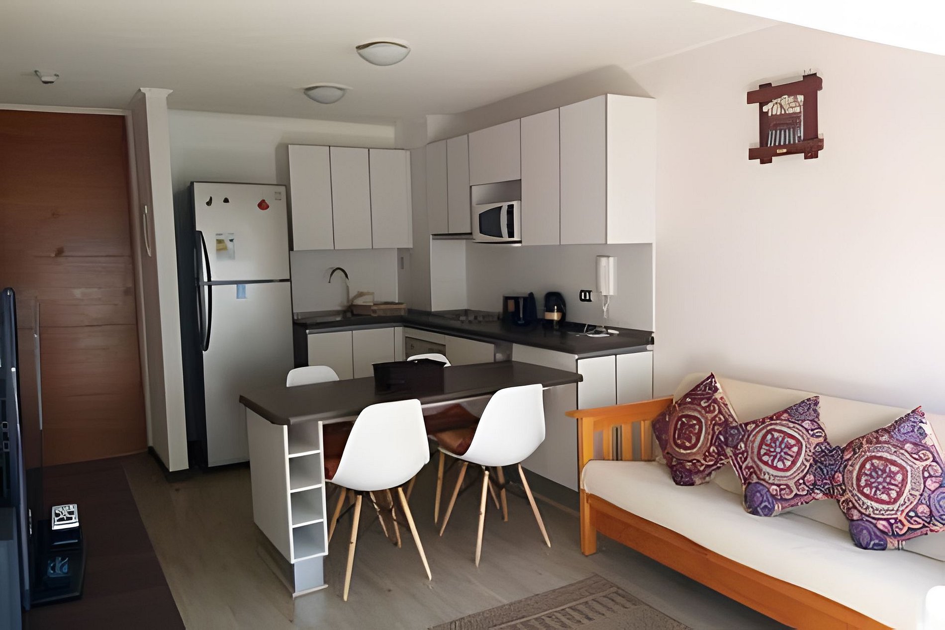 Cómodo departamento en quinto piso de Condominio Pacífico II, ubicado en sector de playa cuatro esquinas. Full equipado para 4 personas, incluye TV cable y WiFi. El departamento cuenta con 2 dormitorios y 2 baños completos, habitación pricipal en suite con cama 2 plazas, segunda habitación con camarote de una plaza, más cocina tipo americana y sala de estar. Linda vista norte hacia la playa y ciudad de La Serena