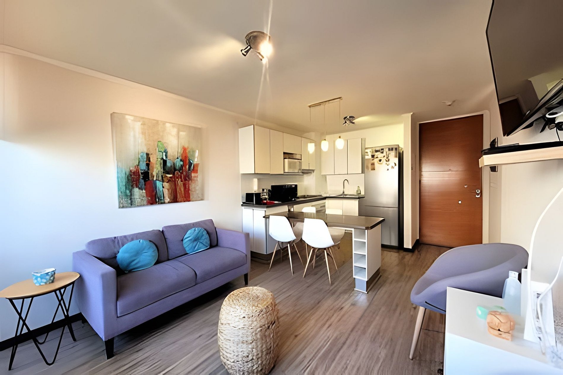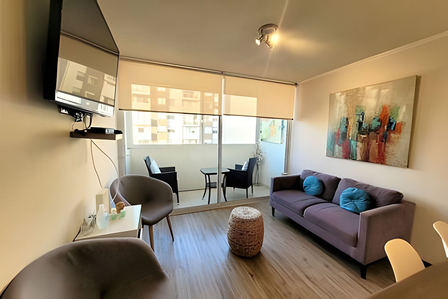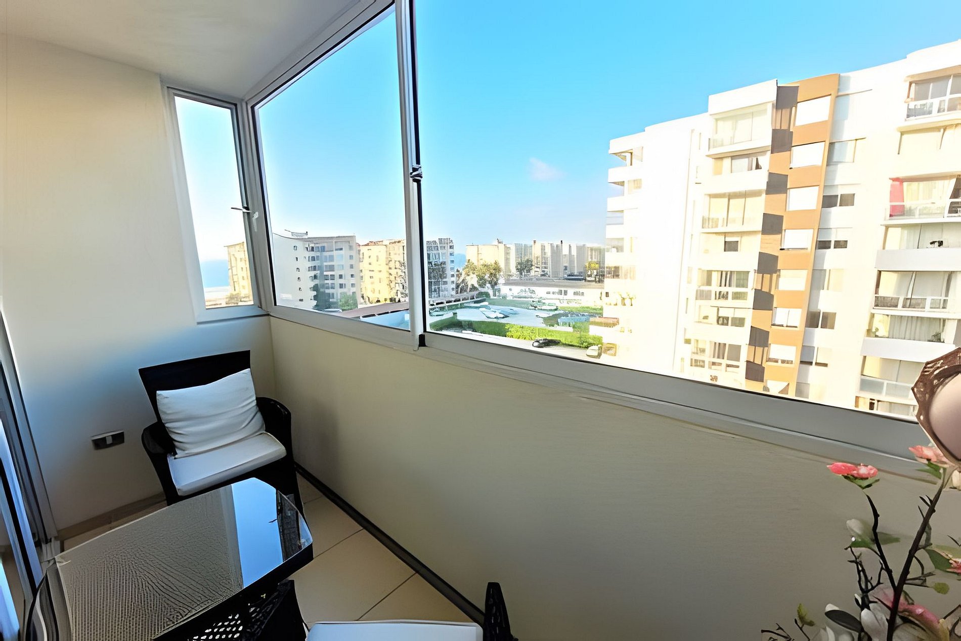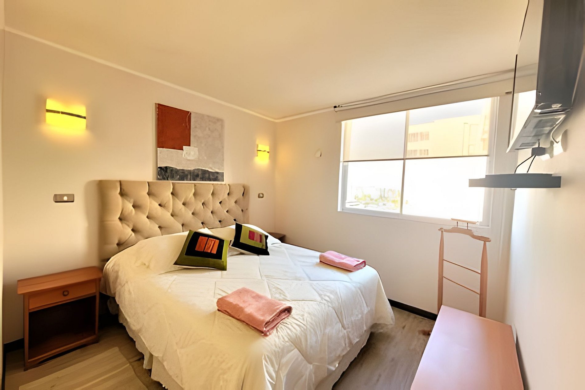 Lindo departamento full equipado para 4 personas, de dos dormitorios y dos baños, balcón cerrado con vidrio protector. Posee tv cable y wifi de fibra. El condominio posee piscinas, quinchos, sala de lavandería de pre pago y estacionamientos. Ubicado a una cuadra de la playa y rodeado de múltiples servicios que harán muy grata su estadía.