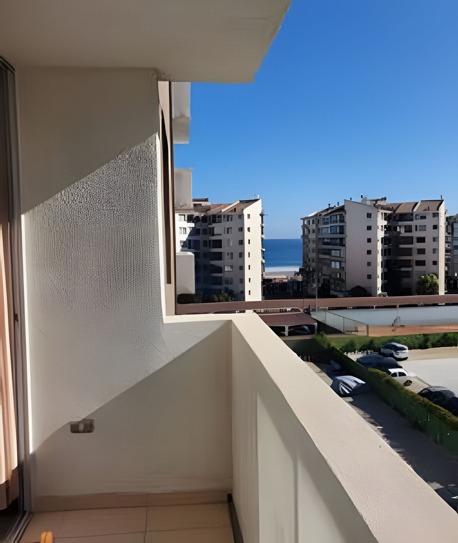 Desde el balcón puedes ver la playa y además una linda vista a la ciudad