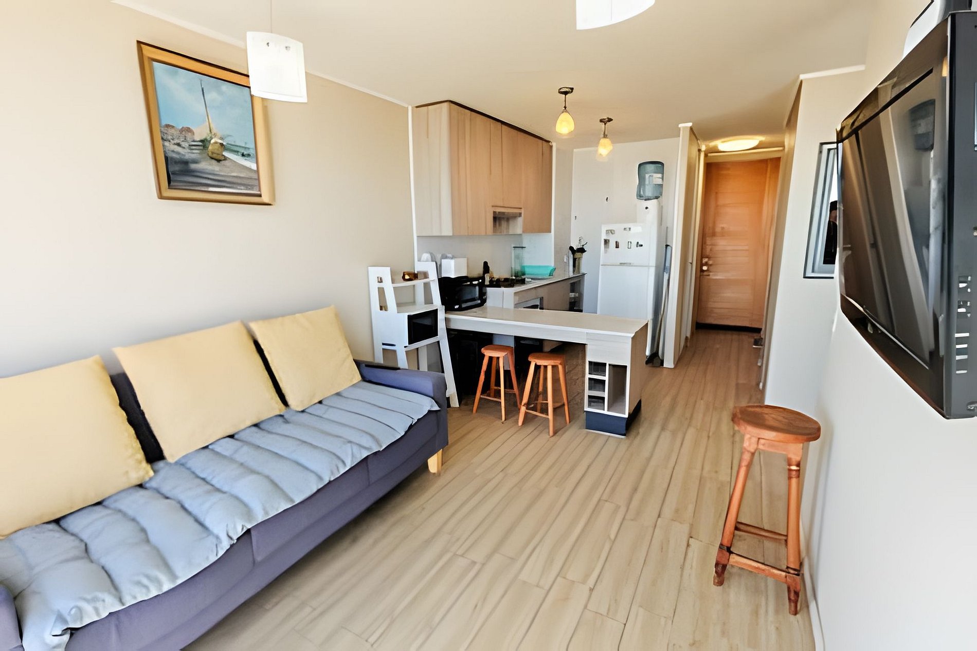 Departamento full equipado para 3 personas en sector de El Milagro en La Serena, ideal si vienen por trabajo, trámites o si prefieres la tranquilidad de una zona residencial con una vista inmejorable del Mar y ciudad. Ubicado en una avenida con buena conectividad rodeado de naturaleza. El condominio posee una linda piscina de temporada, ascensores y estacionamiento designado para el departamento dentro del condominio.